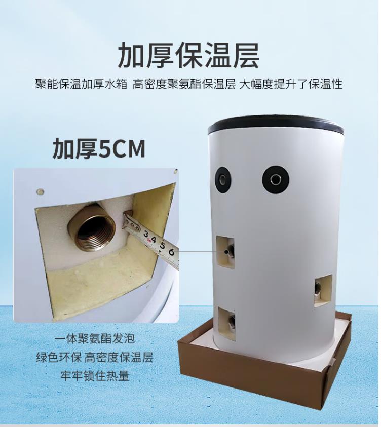 4、水箱采用高密度聚氨酯保溫材料,用德國高壓發(fā)泡技術(shù)一次成型,保溫效果好。
