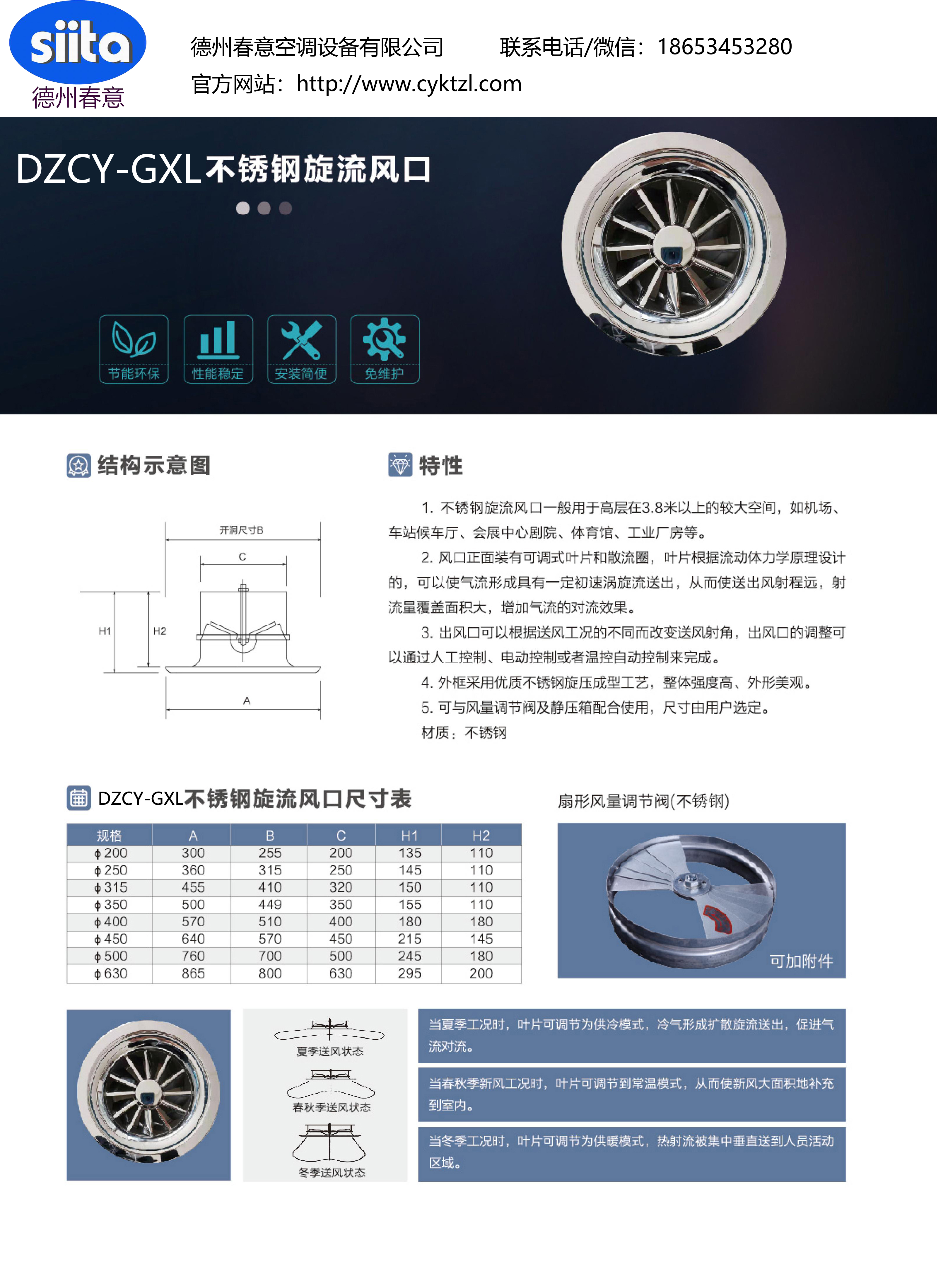 氣流組織高效:通過旋流設計使氣流呈旋轉擴散狀,送風均勻、射程遠,能快速平衡室內溫度,減少氣流死角。